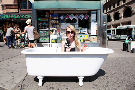 I take my bathtub into the streets of downtown New York City and places as far away as Hawaii. There, I interview people and gets them to confess all sorts of stuff. There are strange and interesting people in New York City and elsewhere.